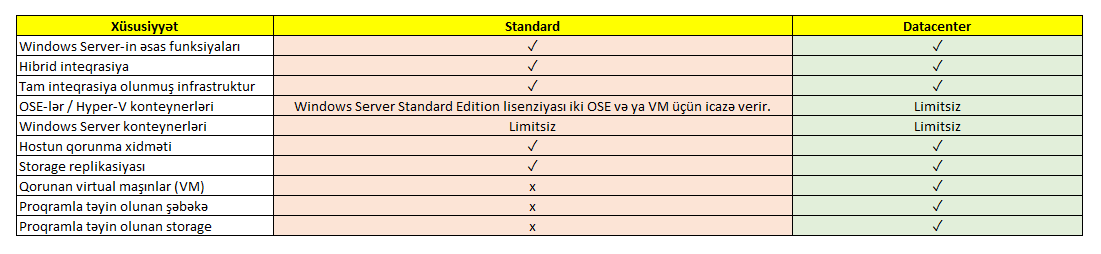 Windows Server 2019 Standard və Datacenter Versiyaları arasındakı əsas fərqlər