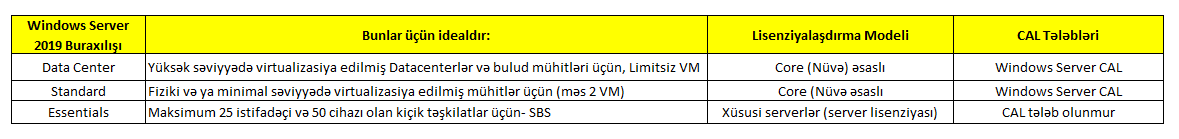 Windows Server 2019 Versiyaları və Lisenziyalar